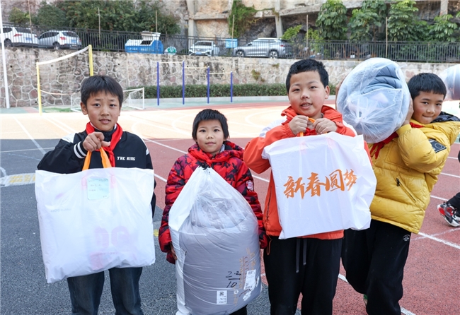 “这件羽绒服真好看!”“我一直想要这个篮球!”孩子们拆开礼物时的惊呼与笑脸,成了冬日最灿烂的阳光。他们或许不知道,手中的礼物跋涉了多远的路:一部分来自数千公里外的深圳,由西华大学深圳校友会的校友们精心采购、远程寄送;另一部分则来自扎根四川的中建八局青年志愿者,他们依托项目属地优势,高效完成了本地物资的筹备与护送。