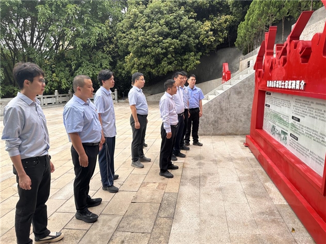 全体人员在纪念碑前整齐列队,怀着无比崇敬的心情肃立默哀,向为民族解放事业英勇献身的先烈致以深切哀悼。随后,全体人员依次献上白菊,并缓步绕行瞻仰烈士纪念碑,认真阅读碑文,项目党支部书记郭龙龙还为大家讲述了肖光星等烈士的英雄事迹以及抗战时期油麻山根据地作为“广州东大门”的战略意义,勉励大家铭记历史、珍惜当下,要以实际行动告慰先烈、建设黄埔。